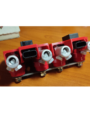 В данном исполнении подключение силовых проводов происходит под углом 90 к силовым выводам GRUNER 750H вдоль корпуса реле в сторону разъема - "вывод вниз".